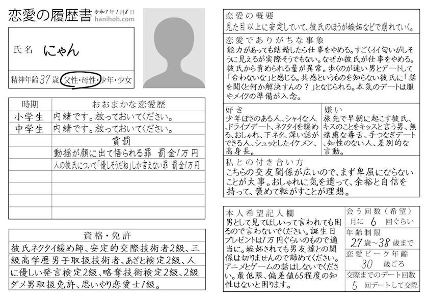 〔恋愛履歴書〕