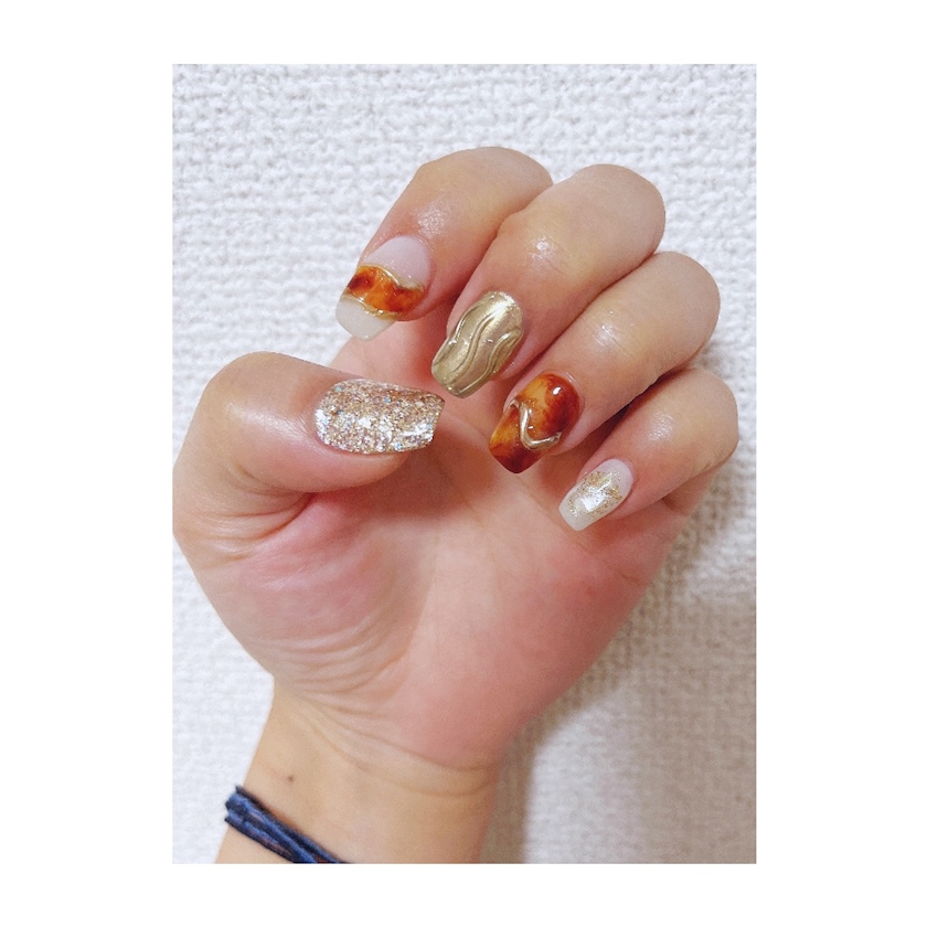 ベッコウ柄を入れたネイルにしました😊🙌