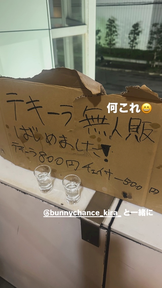 お返しにきらちゃんと、無人販売テキーラを飲みに行ったりしました🥃(無人テキーラってなに??)