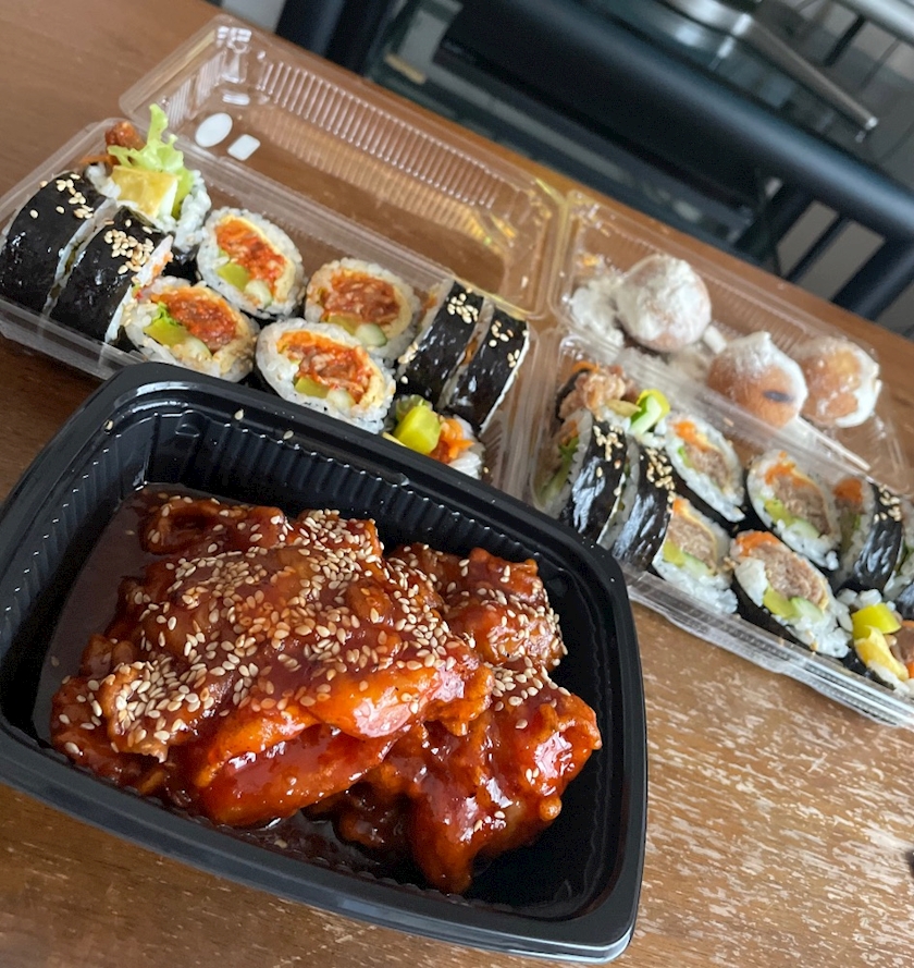 キンパ2種類とヤンニョムチキンとチーズボール
