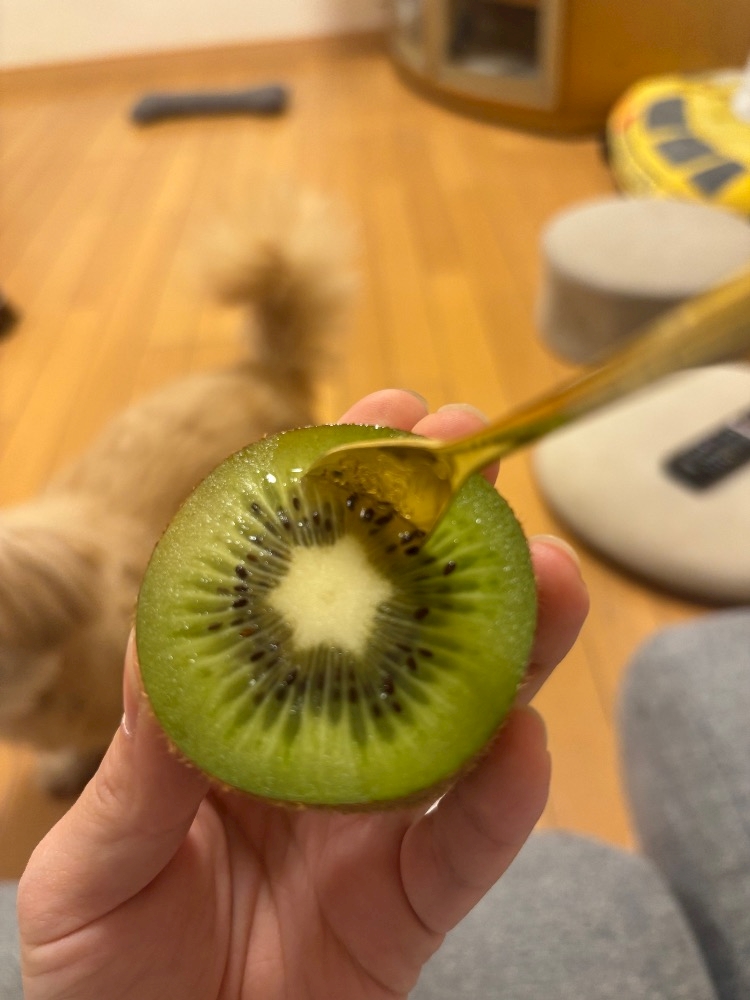 お風呂上がりにキウイ食べてる!🥝