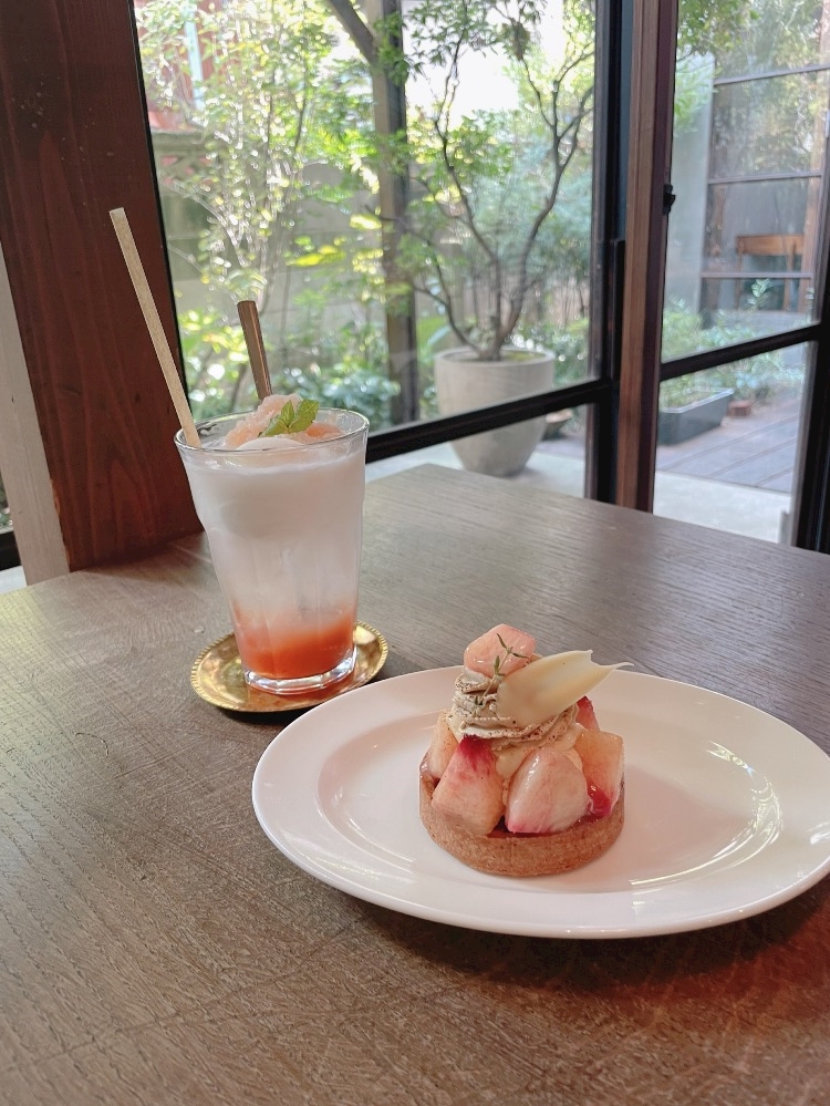 桃のソーダフロートに桃のタルト