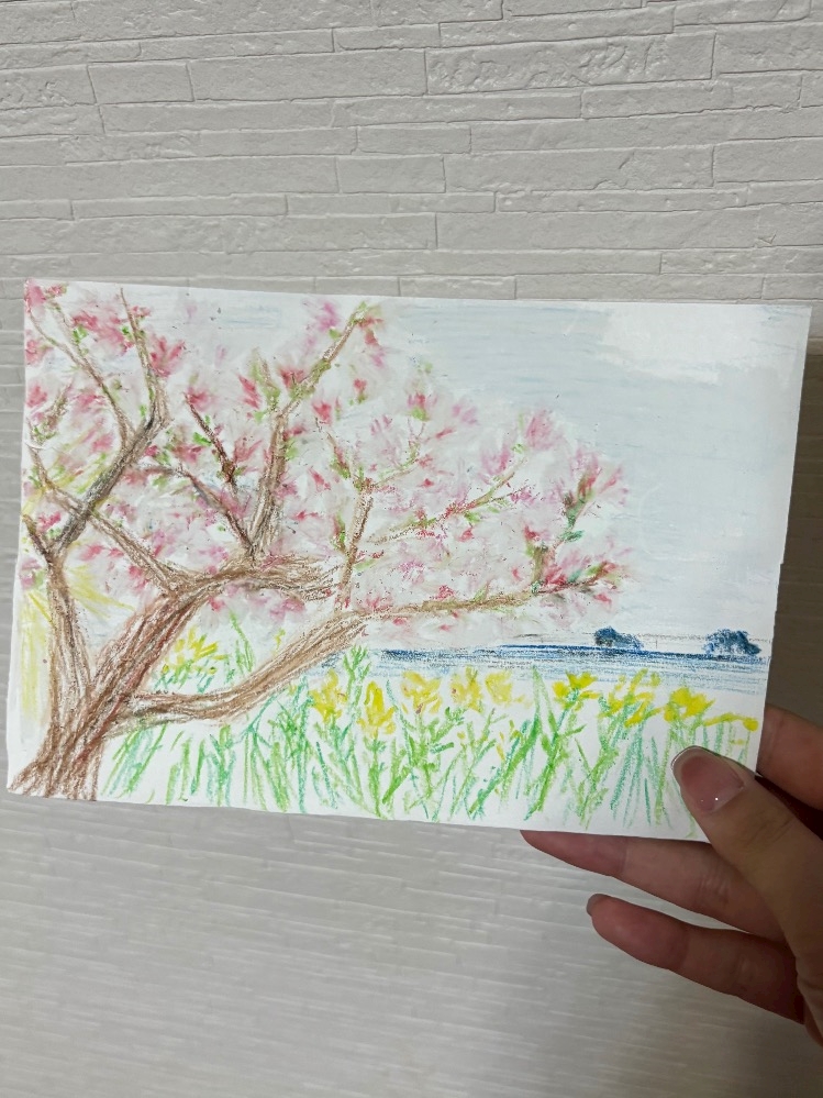 サクラがまだまだ散ってなかったのでクレヨンと紙持ってスケッチしました😌💝
