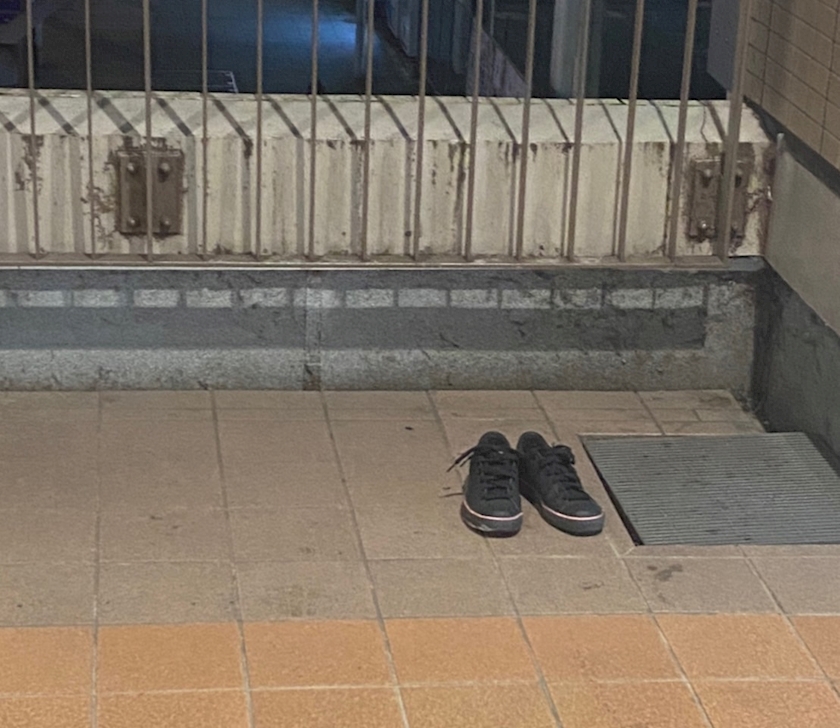 片っぽ靴が落ちてたりするの。