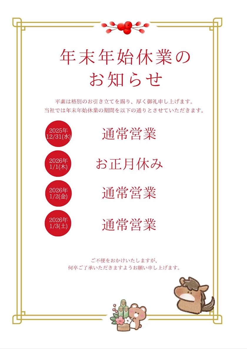 年末年始営業について