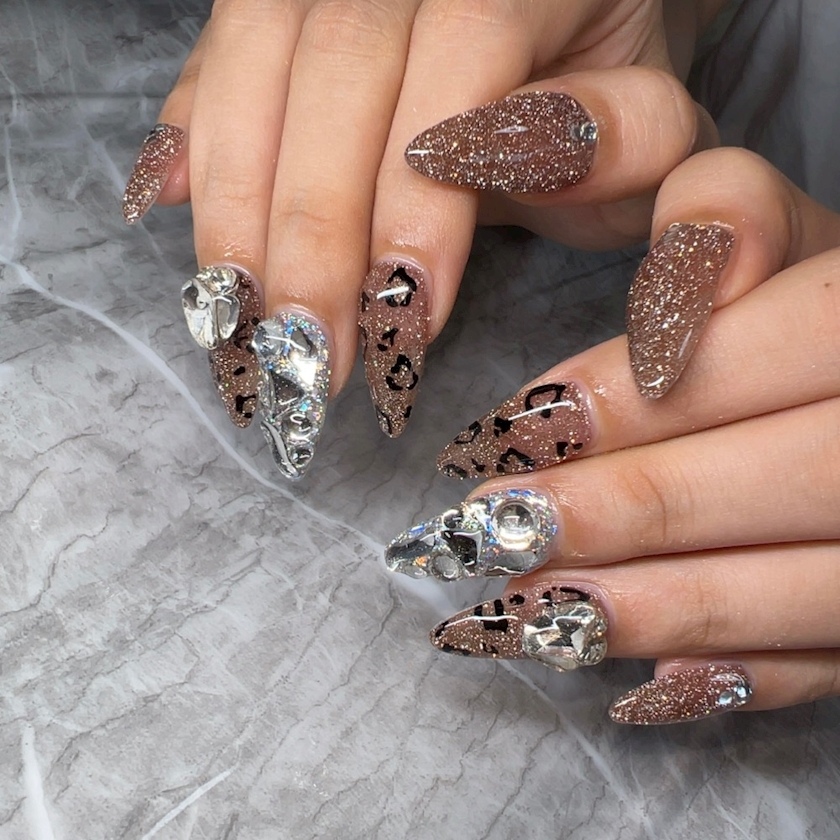 久しぶりに派手にしたくてギラギラ&ヒョウ柄にしました🐆🤎