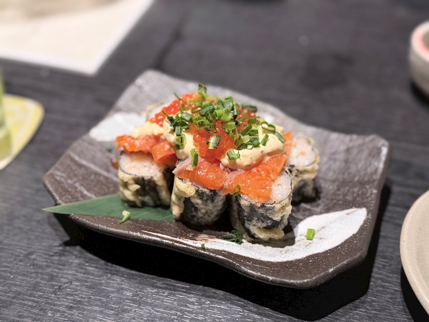 天ぷら寿司のサーモンいくら