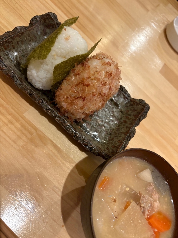 鮭と、おかかのおにぎりに豚汁🍙