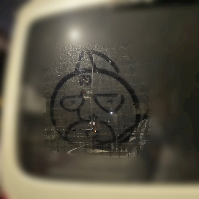 近所の車のリアウィンドウに