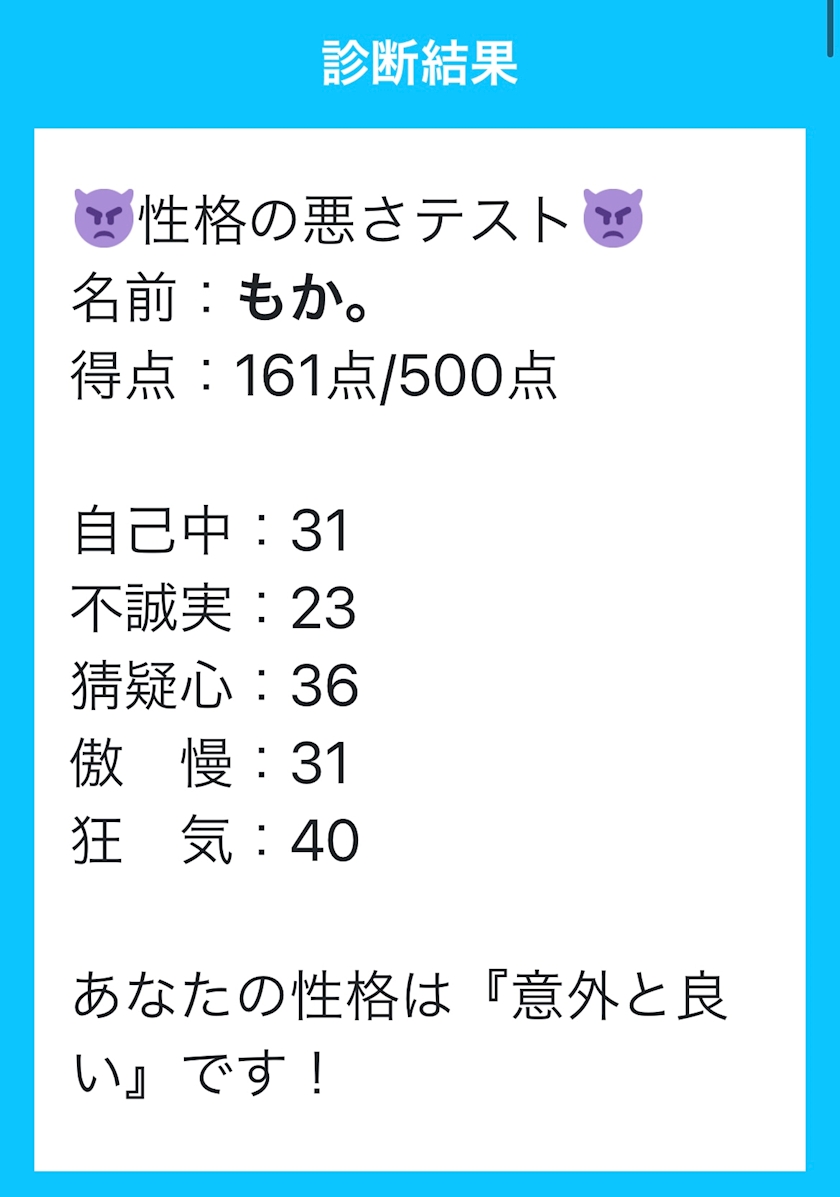 性格の悪さテストってやつやってみたんだけど、