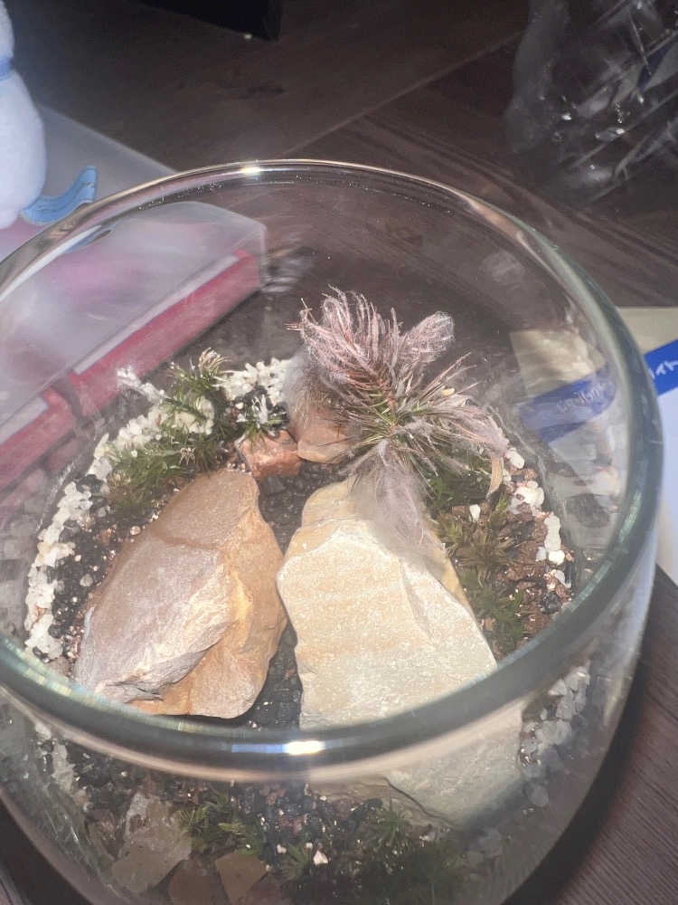 育ててる苔テラリウムのでかい木にふわふわ😱