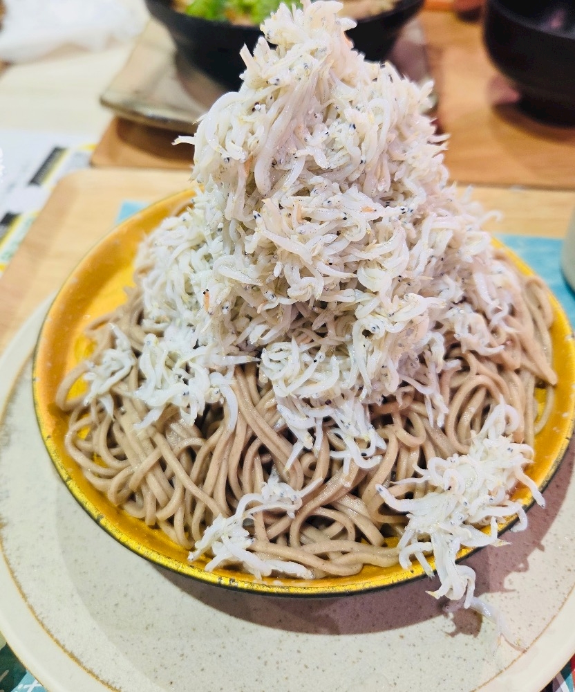 なんとそこの名物(!?)がこのしらすがこれでもかってくらいたっぷりのってるそば↓↓