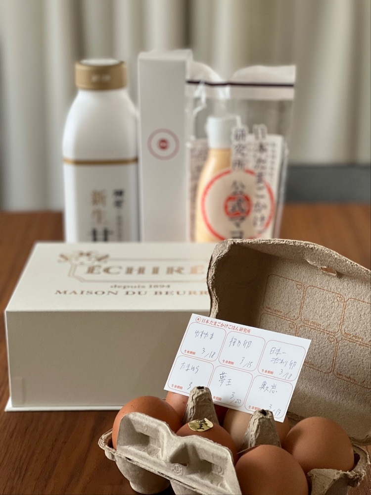 最強の卵かけご飯用生卵と専門醤油。