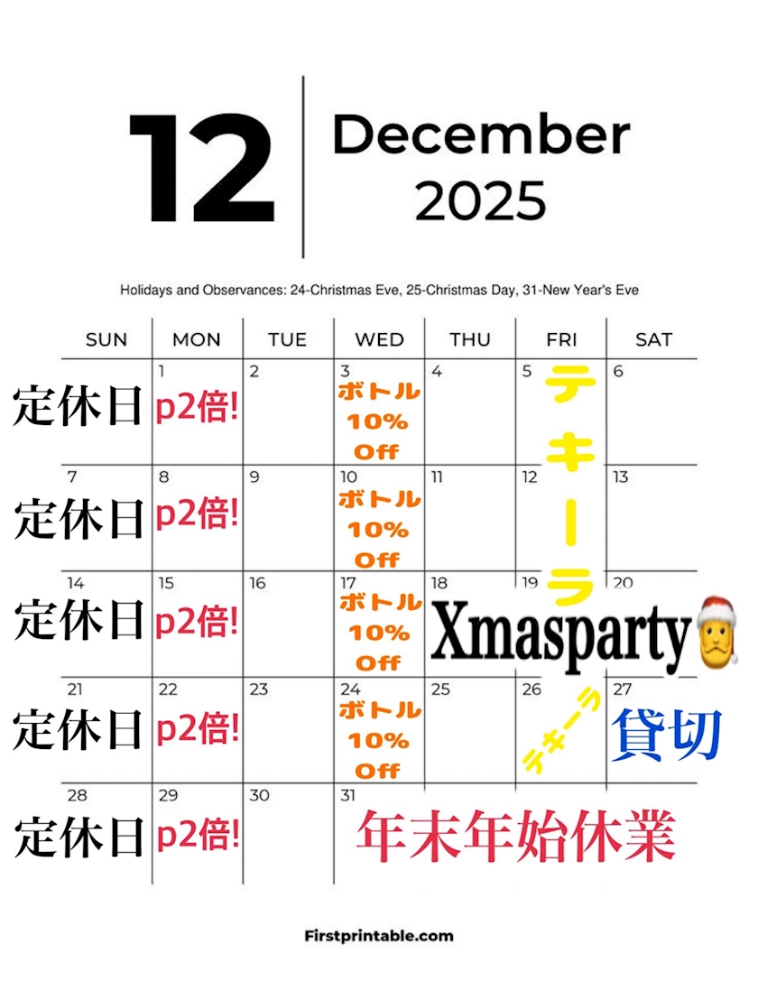 12月開始~今年も後1ヶ月🫨 - みお - HANARE・ハナレ - 朝霞台/北朝霞のパブ/スナック