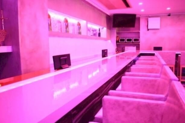 ネオン輝く店内はk-popコンセプト