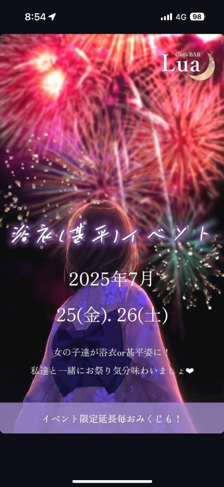 浴衣(甚平)イベント2日目👘 - しずく - Girl`s Bar Lua・ルア - 草加のガールズバー