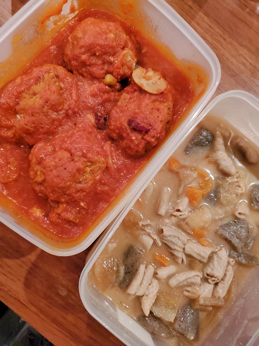 ねねちゃんからハンバーグと、モツ煮の