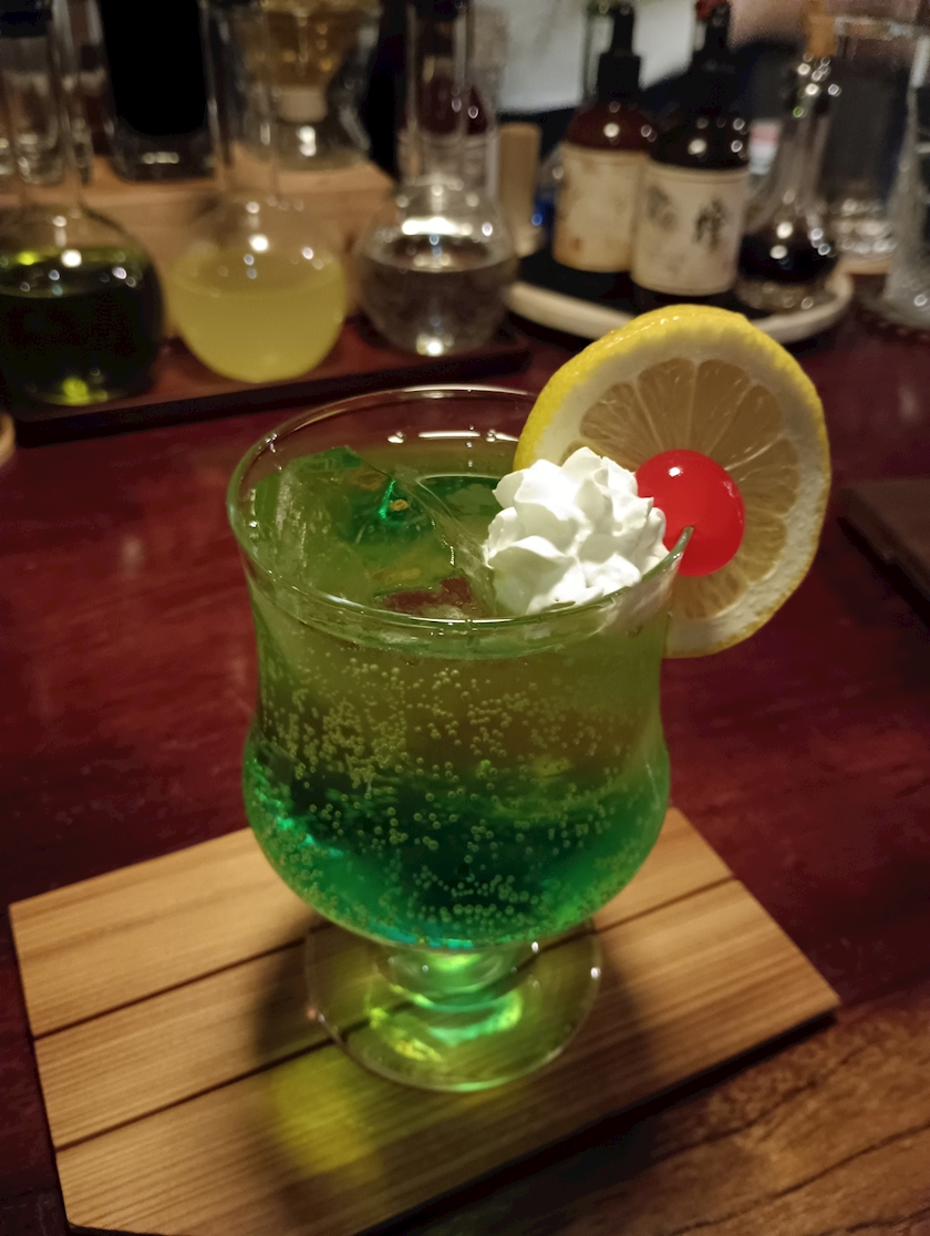 あまりお酒には詳しくないのですが、メロンソーダのようなフレーバーのカクテルをいただきました💕
