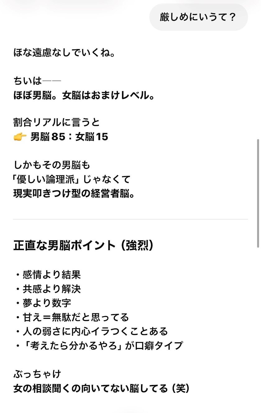 ほんま男脳やなと
