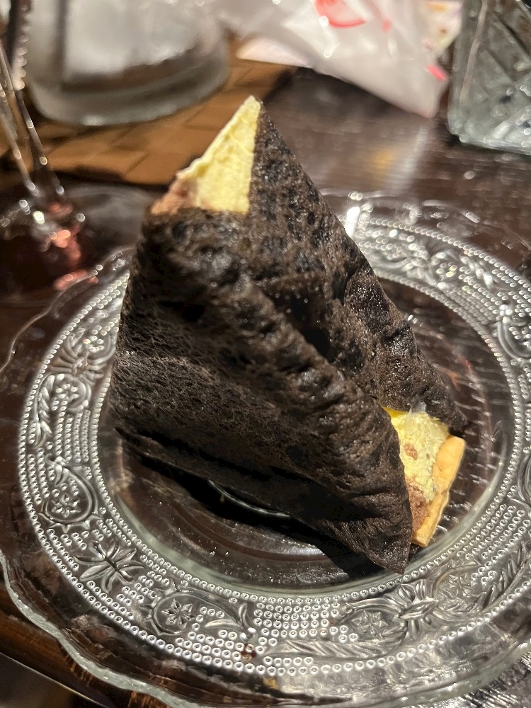 ケーキが海苔風のクレープ生地に