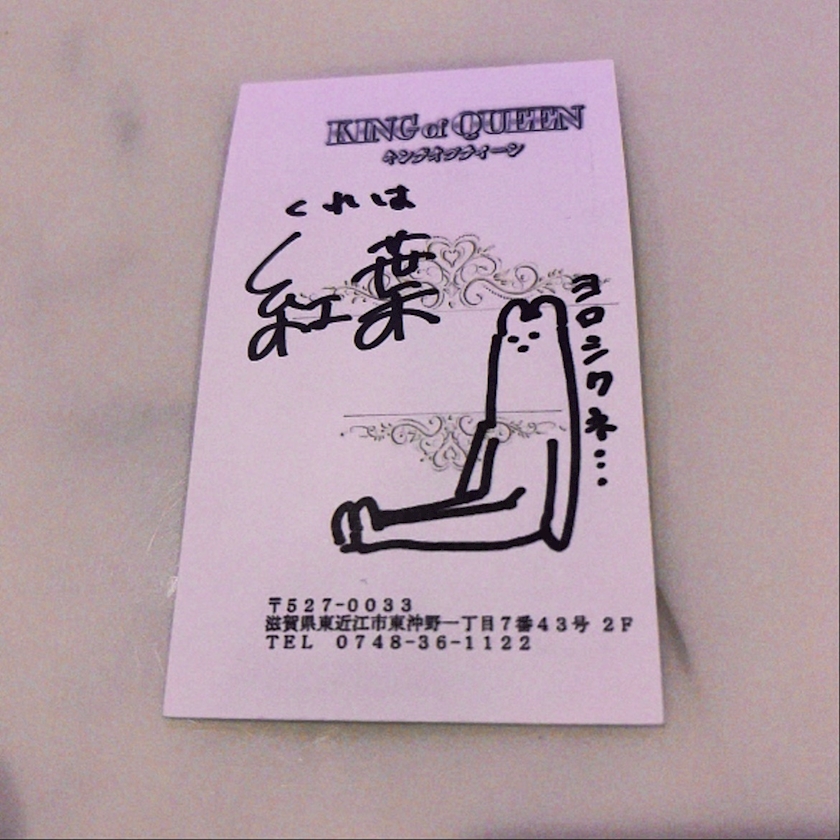まずは名刺でご挨拶させていただきますので、皆様も当店【club KING of QUEEN】までご来店いただけますと幸いでございます。