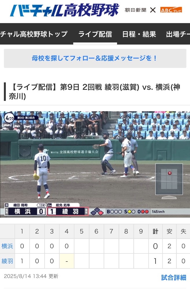 横浜 VS 綾羽の試合⚾️