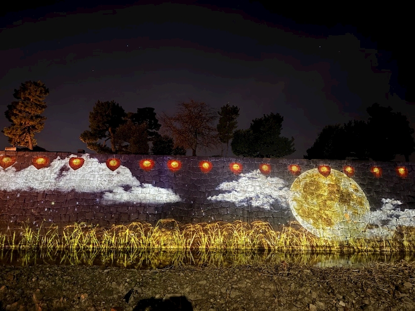 内堀の壁に映し出したり…