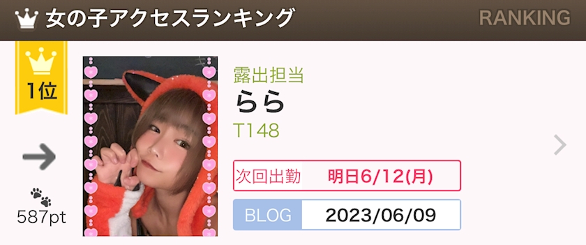 お陰様様で、レボの女の子アクセスランキング1位🥇になりました