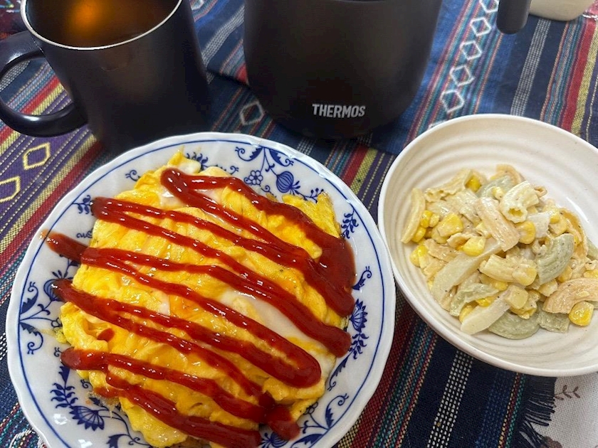 オムライスとマカロニサラダを