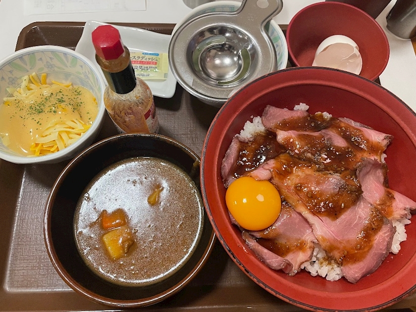 私のすき家おすすめメニューはチーズおんたまカレーとローストビーフ丼です✨️