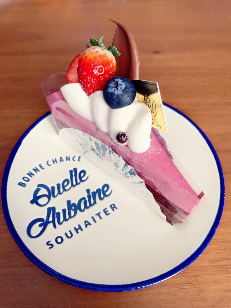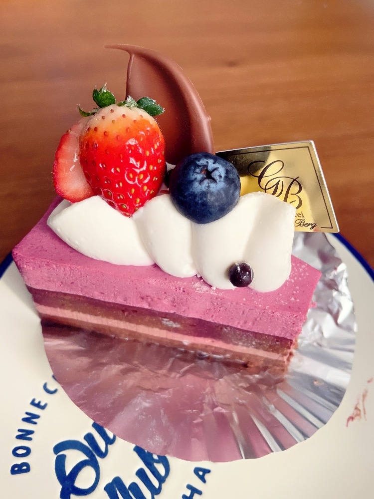 上がベリームース??っぽい感じでチョコクリームとココアスポンジのケーキ🫐🍫