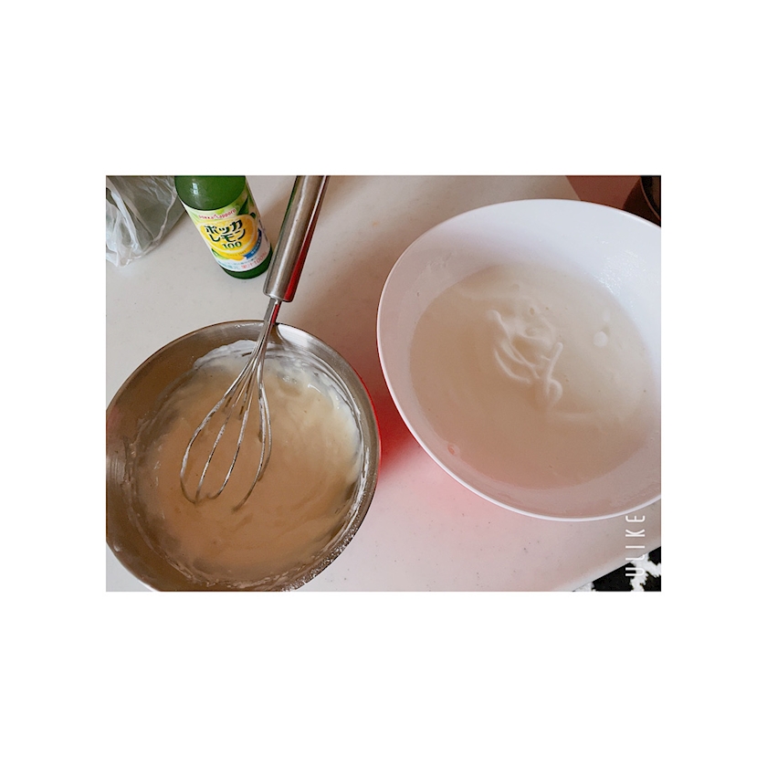 朝の6時ごろ🥚白身かんましてメレンゲ作り。
