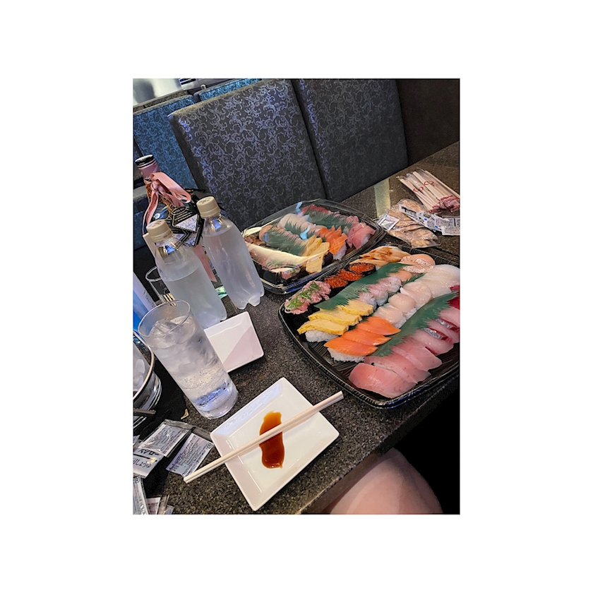 「これから🍣寿司買って向かうよ