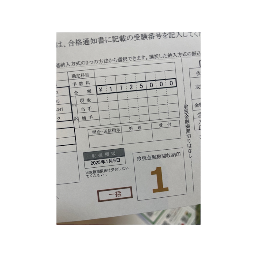 入学金の振り込み。