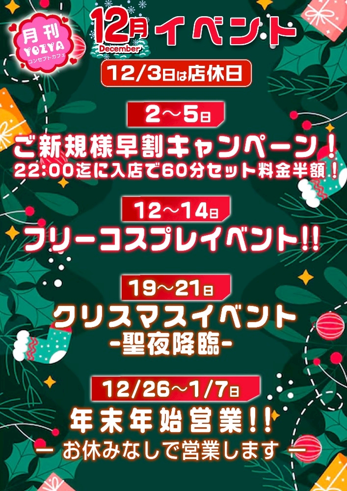 12月イベント - おと - コンセプトカフェYOZYA・ヨジャ - 東武宇都宮のコンカフェ