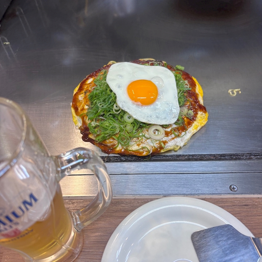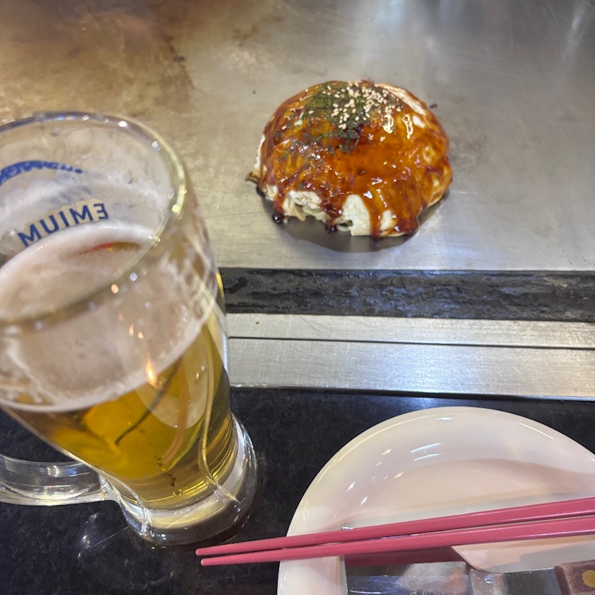 一人で広島焼き2、ビール2