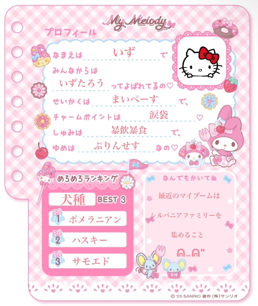 プロフィール帳見つけたから記入してみた