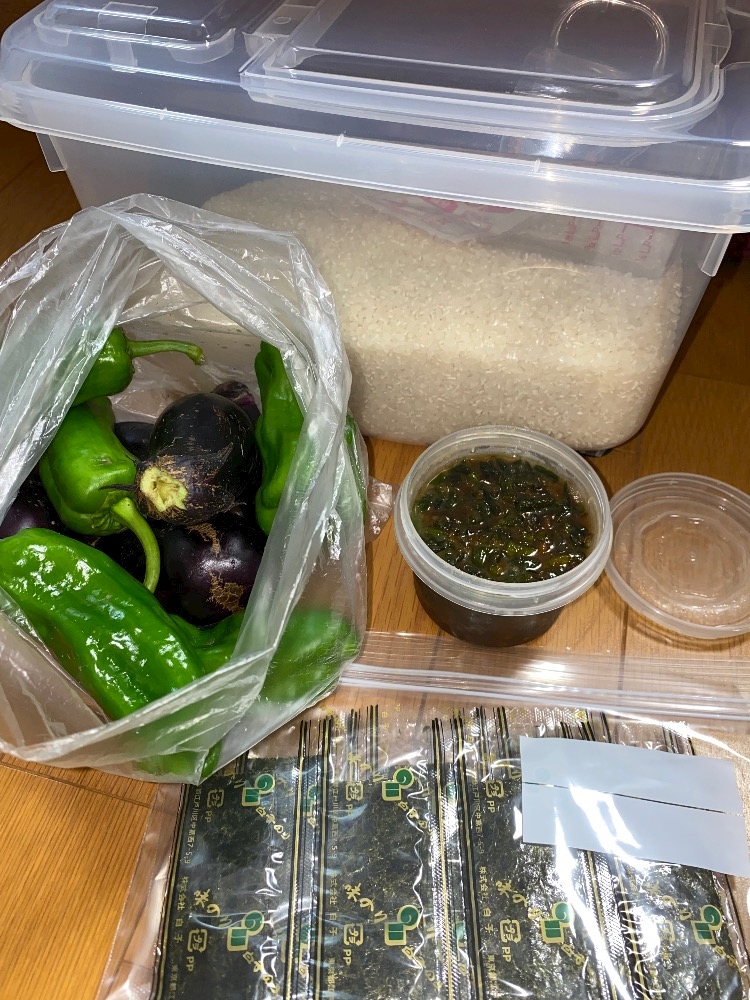 実家の畑で採れたおナスさん🍆とピーマン🫑