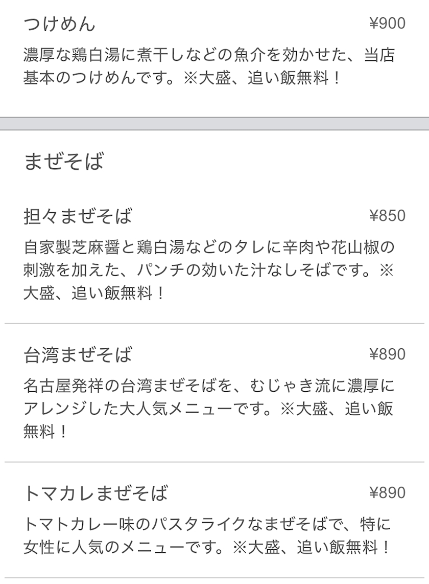「つけめん・まぜそば むじゃき」は