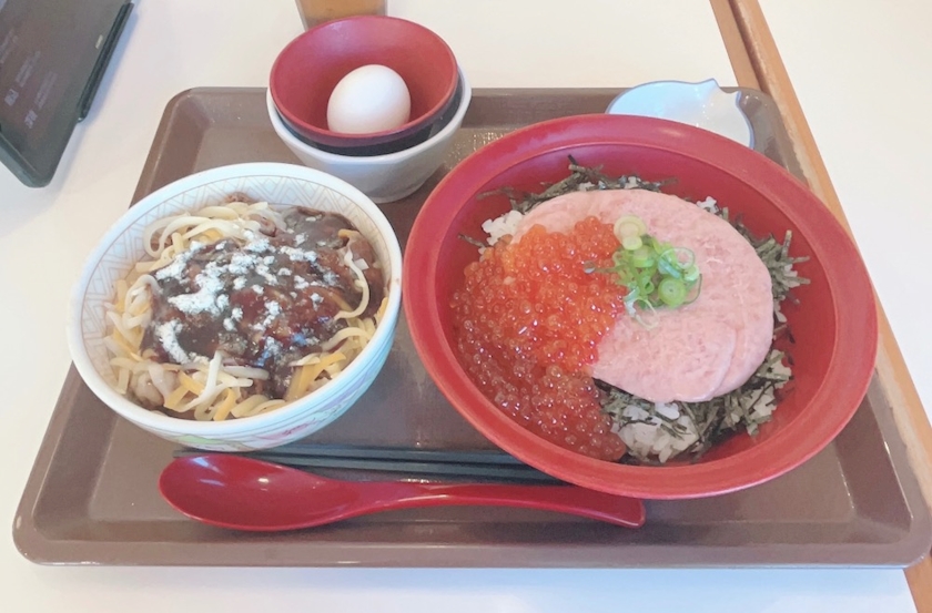 いくら丼と、デミグラスチー牛🐮