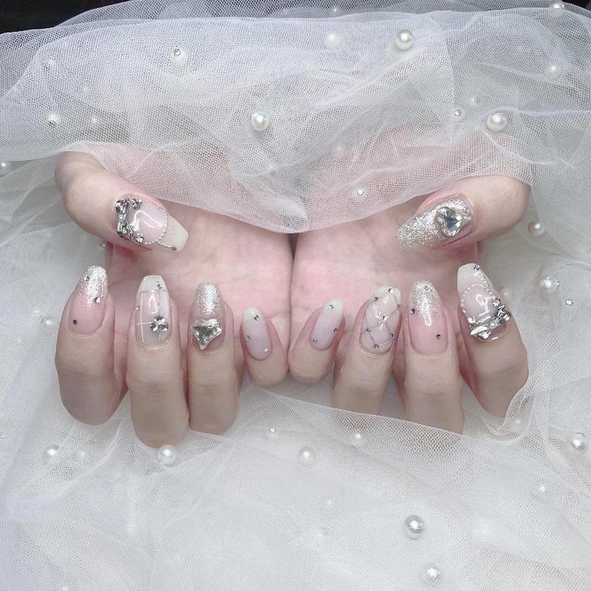 今回は白っぽくてキラキラなネイルにしてみました🤍