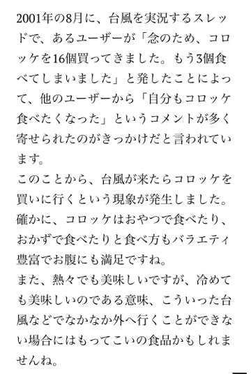 台風のたびにコロッケ買って