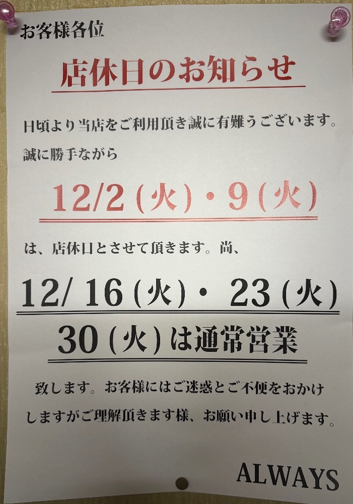 年内の営業もあと5日