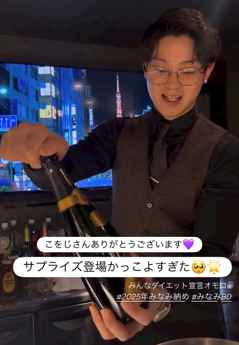 サプライズで現れて高級シャンパンで