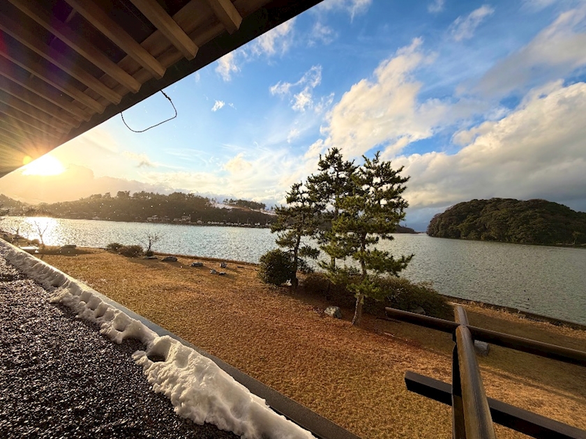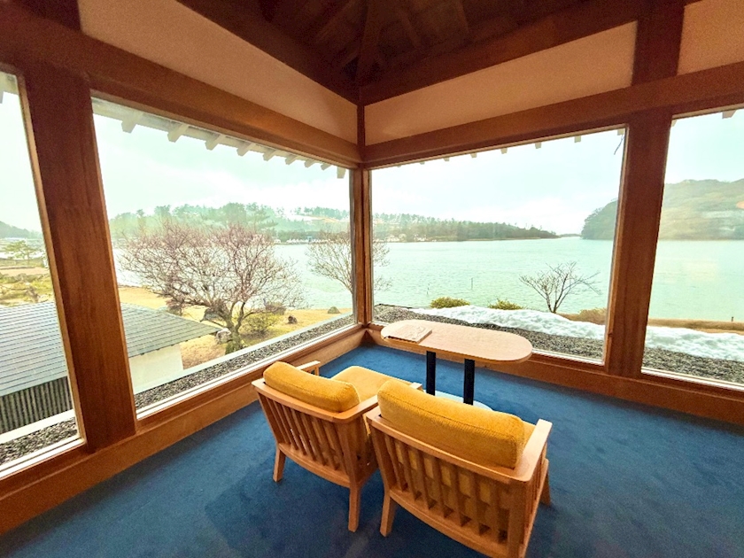 ここは湖を眺めながら