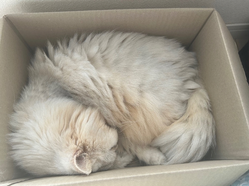 段ボールがだいすきでいつも段ボールに入って満足そうにしてます笑