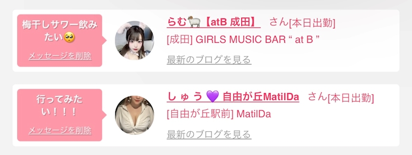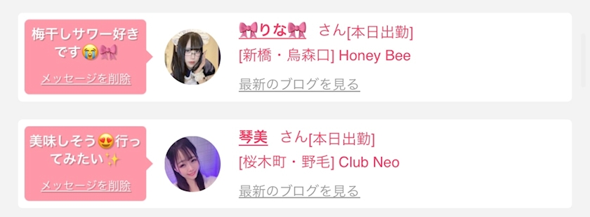 女の子の出勤情報や