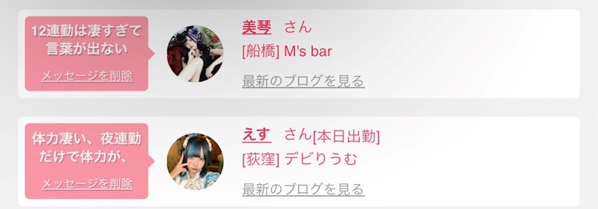 女の子の出勤情報や