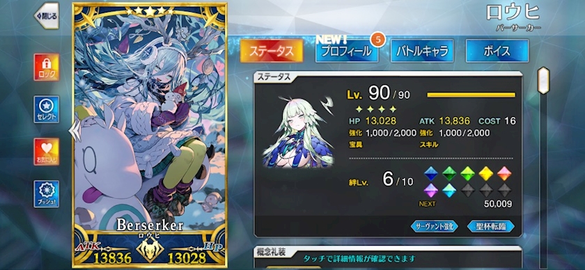 ロウヒの絆レベルが0→6になりました✨