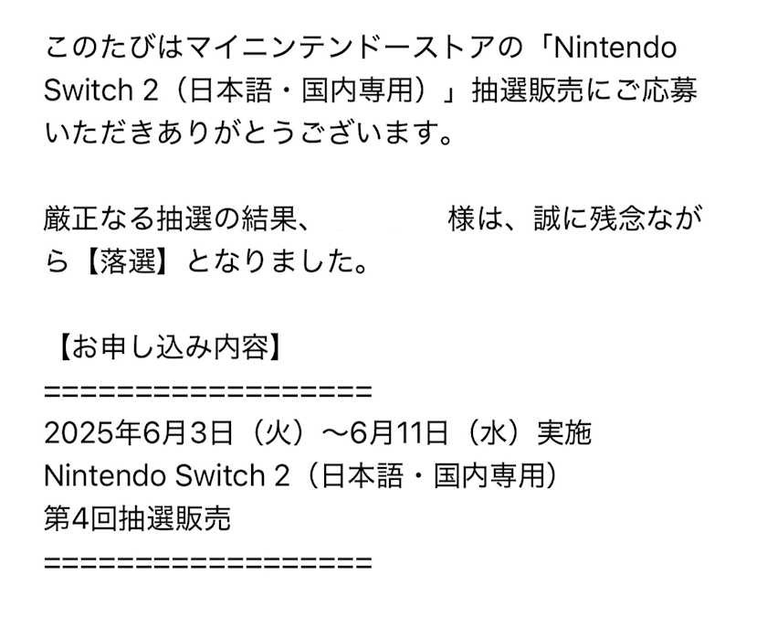 第4回抽選販売の当落発表されました!!